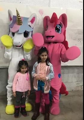 The cute unicorn volunteers have attracted the love of many children